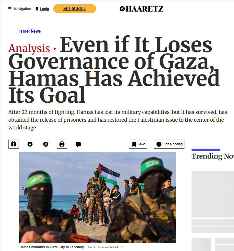 Στην προκειμένη περίπτωση το «αόρατο» στήριγμα, με άμεσο τρόπο, ήταν η Άγκυρα, η Ντόχα και το Κάιρο. Αυτά τα τρία κράτη, μαζί με τους εκπροσώπους της Παλαιστινιακής αντίστασης, σχεδίασαν τον ελιγμό. Σκίζοντας ουσιαστικά τα «20 σημεία», και φέρνοντας την καούρα του ψόφιου κουναβιού για ένα «νόμπελ ειρήνης» σχεδόν εκεί που βρισκόταν η προηγούμενη «συμφωνία εκεχειρίας», στις αρχές της χρονιάς∙ εκείνη όπου αφού ολοκληρώθηκε η 1η φάση της οι θεοναζί την παραβίασαν οριζοντίως και καθέτως, επιστρέφοντας στις μαζικές δολοφονίες και καταστροφές.