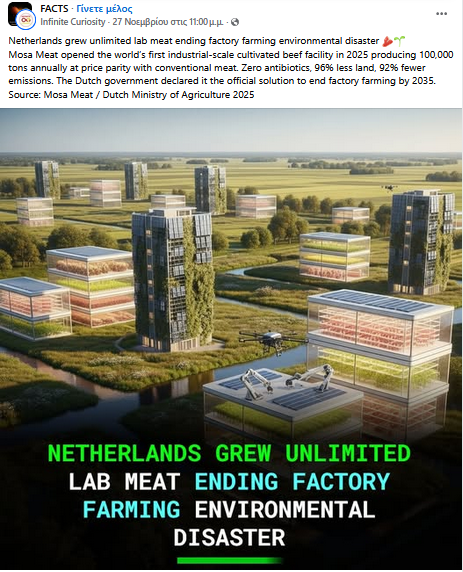 Αλλά δεν είναι μόνη της. Οι εξελίξεις στις βιοτεχνολογίες και, κυρίως, τα συμφέροντα μιας χούφτας χημικών / βιοτεχνολογικών (ευρωπαϊκών…) μαφιών, υποδεικνύουν ότι τα «παραδοσιακά τρόφιμα» είναι ξεπερασμένα. Ακόμα χειρότερα: καταστρέφουν το κλίμα! Όταν, για παράδειγμα, κοτζάμ ολλανδικό κράτος / κεφάλαιο βάζει στόχο την μείωση των μοσχαριών κατά 30% ως το 2030 («ονειρική» χρονολογία, για τα πάντα!!!) επικαλούμενο «κρίση αζώτου» (επειδή τα μοσχάρια ρεύονται και κλάνουν…), απαιτώντας απ’ τις κτηνοτροφικές επιχειρήσεις του να «κόψουν κεφάλια», τότε δεν κτυπάνε απλές καμπάνες. Κτυπάνε συγκροτήματα κωδωναστασίων όλα μαζί!!