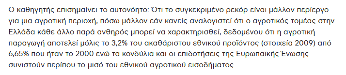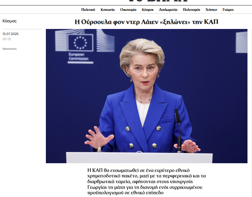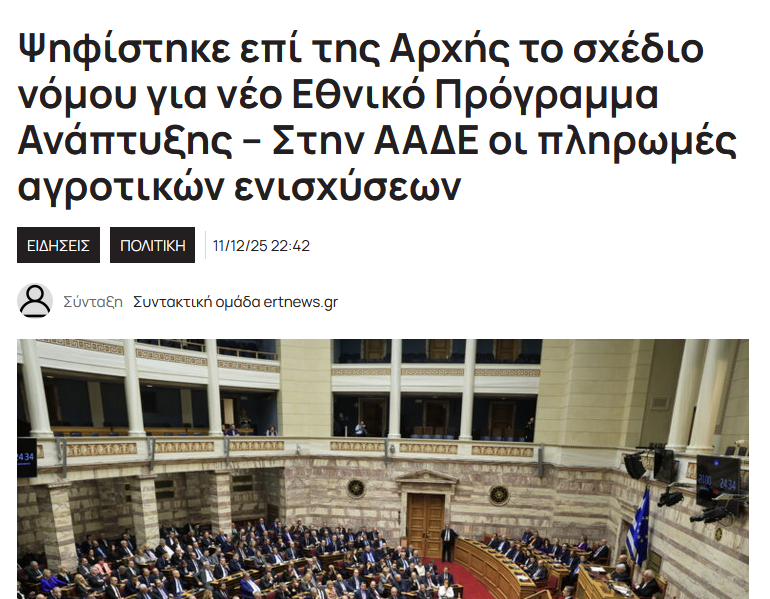 Προσέξτε τις ημερομηνίες. Στις 15 Ιούλη το καθεστωτικό «βήμα» μιλούσε για την συγχώνευση της ΚΑΠ σε «εθνικά προγράμματα» – με σκοπό την «συρρίκνωση των παροχών». Στις 11 Δεκέμβρη, μετά από 5 μήνες, το ελλαδιστάν «έκανε το καθήκον του» μεταφέροντας την ευθύνη των αγροκτηνοτροφικών επιδοτήσεων σ’ έναν ουσιαστικά φορολογικό μηχανισμό. Για την «πάταξη των καταχρήσεων» είπε το γκουβέρνο…