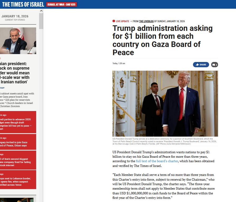 Δευτέρα 19 Γενάρη (00.51) >> Χέστηκαν απ’ την χαρά τους στην Αθήνα και στη Λευκωσία: το ψόφιο κουνάβι τους καλεί να πάρουν πόστο για την «ειρήνη» στην Παλαιστίνη! Άρα τους αγαπάει!!!