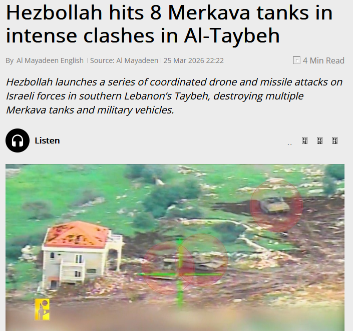 Η τωρινή της άγνοια εξελίσσεται σ’ ένα ακόμα φιάσκο. Οι πληροφορίες μέσα απ’ το θεοναζί, απαρτχάιντ καθεστώς λένε ότι η Hezb’Allah απ’ τις 2 Μάρτη εκτοξεύει κατά μέσο όρο 100 ρουκέτες και πυραύλους το 24ωρο∙ ένα κτύπημα κάθε λιγότερο από 20 λεπτά της ώρας! Όσο για τα θρυλικά τανκς merkava; Έχουν γίνει «πελατάκια» των λιβανέζων παρτιζάνων! (Η τακτική, όταν πρόκειται για φάλλαγες τεθωρακισμένων, είναι να κτυπούν / ακινητοποιούν το πρώτο και το τελευταίο, ώστε να μην υπάρχει διαφυγή, και ύστερα περιλαβαίνουν τα ενδιάμεσα…)