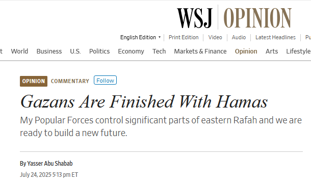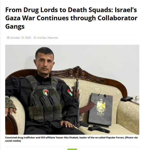 Στη διάρκεια της σύντομης εκεχειρίας στις αρχές του 2025 το θεοναζί καθεστώς, βλέποντας ότι χάνει τον πόλεμο, έδωσε στη συμμορία του Shabab στολές, βαρύτερα όπλα και οχήματα. To κάθαρμα (όπως θα περίμενε κανείς) έγινε το «αγαπημένο παιδί» της δυτικής δημαγωγίας. «Αξιόπιστη πηγή πληροφοριών» (για την …. κατάρρευση της ‘Hamas’….), αλλά ακόμα και «αρθρογράφος»… Εδώ στην world street journal στις 24 Ιούλη 2025: